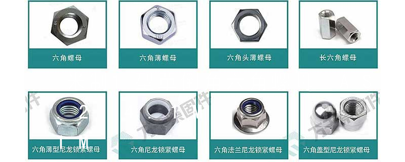 1、依據ANSI/ASME B18.2.2、ANSI/ASME B18.6.3.(機械螺帽)、BSW916、JIS B 1181 按其特性又可分為:普通螺帽(FINISHED HEX NUTS )(1/4以上含1/4規格)––FIN 薄型螺帽(FINSHED HEX JAM NUTS)( (1/4以上含1/4規格)––JAM 重型螺帽(HEAVY HEX NUTS) (1/4以上含1/4規格)––HVY