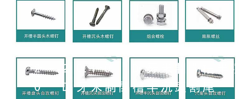 20.GB102-86 六角頭木螺釘 材料:鋼 銅 L0≈2/3L 21.GB/T14210-93 墻板自攻螺釘 L≤50mm 全螺紋L1=6mm L>50mm b>45mm 材料:日本SWRCH18A 美國C1018 22.QB/SB1005-91米字槽沉頭纖維板螺釘 材料:滲碳鋼 L 主要分類包括普通螺絲、機螺絲、自攻螺絲和膨脹螺絲三種。有頭螺釘Cap screw 過去限于全牙的扣件。六角頭螺釘Hex cap screw與大六角螺栓Hex bolt 顧名思義為頭部為六角型的外螺紋扣件,設計為使用扳手轉動。依照ASME B18.2.